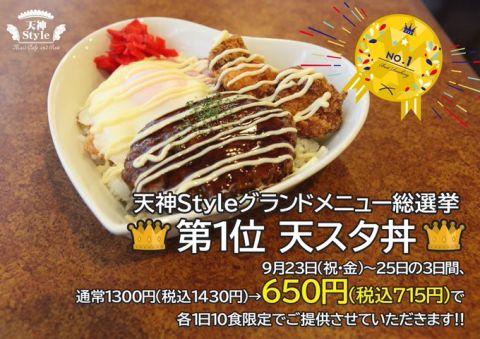 天神styleグランドメニュー総選挙第一位『天スタ丼』を本日も半額で提供させていただきます🍴