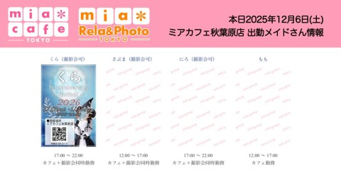 👑本日12月6日(土)のミアカフェ秋葉原店