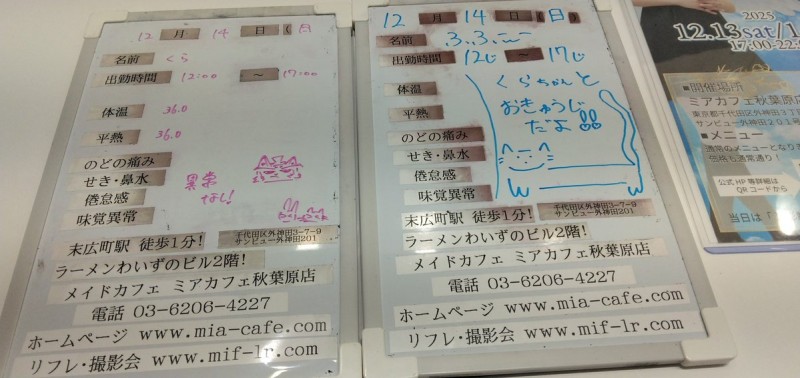 | å¶æ¥æé | âãã¢ã«ãã§æ±äº¬åºïŒã¡ã€ãã«ãã§ïŒhttp://www.mia-cafe.com/ãâ â¡å¹³æ¥ãæïœéãïŒïŒïŒïŒïŒïœïŒïŒïŒïŒïŒ â¡åæã»æ¥æã»ç¥æ¥ãïŒïŒïŒïŒïŒïœïŒïŒïŒïŒïŒ â å®äŒæ¥ããªãïŒ2019幎1æããå®äŒæ¥å»æ¢ïŒ â¡ã©ã¹ããªãŒããŒãéåºã®ïŒïŒåå ãïŒïŒïŒïŒïŒéåºã®å ŽåâïŒïŒïŒïŒïŒã©ã¹ããªãŒããŒ å¶æ¥æ¥ãåºå€ç¶æ³ã«ã€ããŠã¯ãã¡ãã http://pandaland.cutegirl.jp/mif/c_cms_csv/sch_top.php âãã¢ãªã©ïŒãã©ãæ±äº¬åºïŒæ®åœ±äŒïŒãªãã¬ïŒhttp://www.mif-lr.com/ãâ â¡å šæ¥ãïŒïŒïŒïŒïŒãïŒïŒïŒïŒïŒãã§ãããªã©ã¯ãŒãŒã·ã§ã³åºå€ã¹ã¿ãããããæé垯ã®ã¿å¶æ¥ã§ãã â å®äŒæ¥ã¯äžå®äŒïŒåºå€ã¹ã¿ãããããæé垯ã®å¶æ¥ïŒ â¡æçµåä»ãéåºã®ïŒïŒåå ãïŒïŒïŒïŒïŒéåºã®å ŽåâïŒïŒïŒïŒïŒïŒïŒïŒïŒïŒïŒè¿ã«æœè¡æéãçµããã³ãŒã¹ïŒ â»é«æ ¡çäžå¯ âæ·±å€å¶æ¥ã«ã€ããŠã¯ãå ¬åŒãµã€ãå³äžã® http://market.chu.jp/schedule1/sche37.cgi ãã¢ã°ã«ãŒãç·åã¹ã±ãžã¥ãŒã«ïŒïŒ°ïŒ£ã»ã¹ããïŒ http://market.chu.jp/schedule1/sche37.cgi?dm=1 ãã¢ã°ã«ãŒãç·åã¹ã±ãžã¥ãŒã«ïŒã¬ã©æºåž¯ïŒ ãã芧ãã ãããåç¥æ¥ã®ã¿å¶æ¥ãšãªããŸããåç¥æ¥ä»¥å€ã¯æ·±å€å¶æ¥ããããŠãããŸããã æ·±å€å¶æ¥å¯Ÿè±¡æ¥ãïŒïŒïŒïŒïŒãç¿æïŒïŒïŒïŒïŒïŒ¬ïŒïŒ¯ïŒïŒïŒïŒïŒïŒ | ||||||||||||||